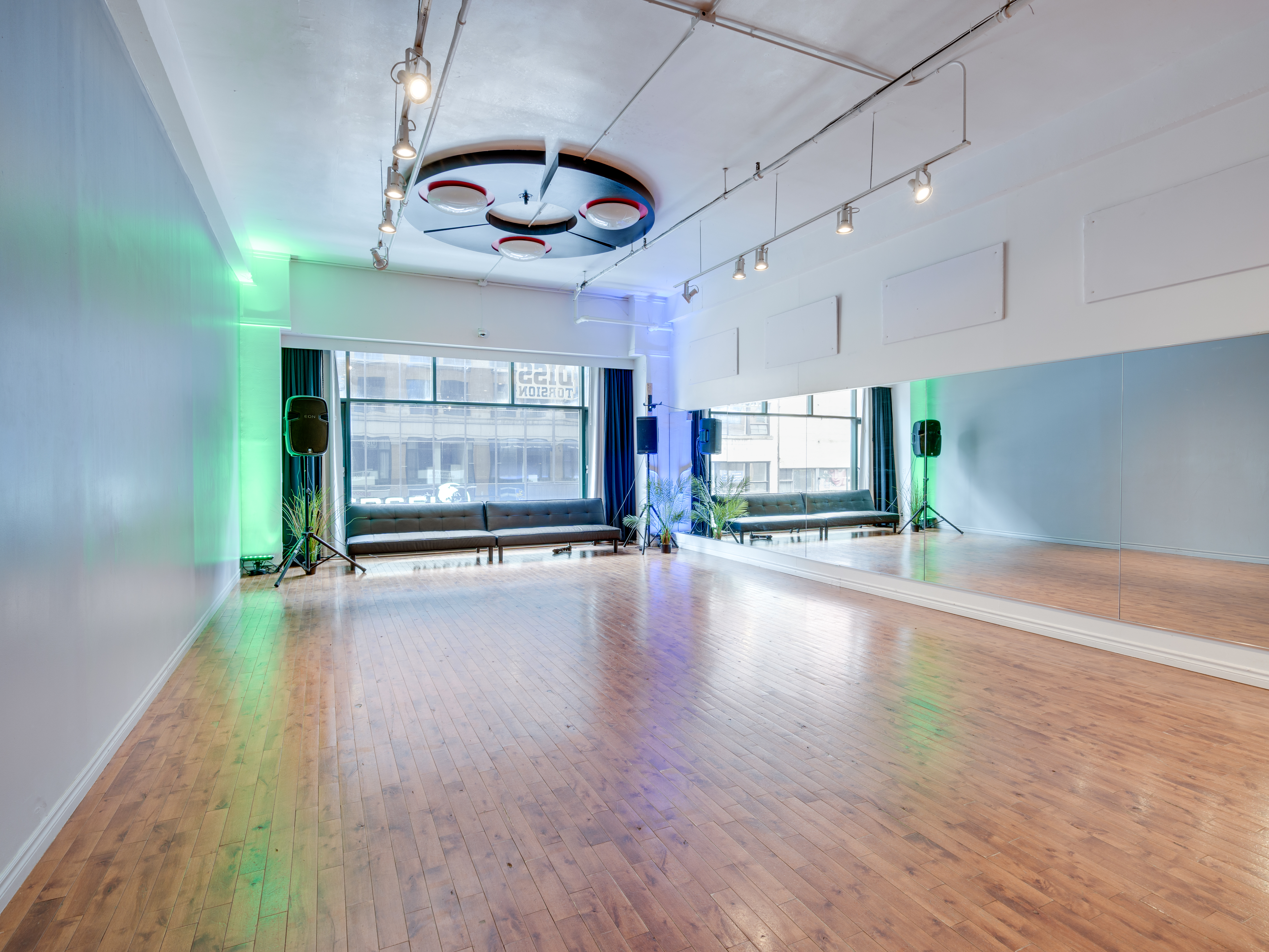 Diss Torsion has two bright, spacious studio rental spaces equipped with air-conditioning and sound systems. The studio rental spaces also have large mirrors for group activities. Diss Torsion also has lighting and equipment, tables and chairs, and additional audiovisual equipment for rent at your request to enhance your events.